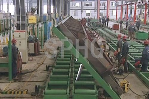 采用自動(dòng)定位方式,所有工位均采用自動(dòng)焊接。整條生產(chǎn)線采用滾輪輸送方式,在生產(chǎn)過程中,盡量避免行吊在工件上的使用,節(jié)省了行吊的使用時(shí)間,提高了工作效率。