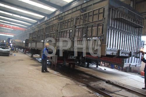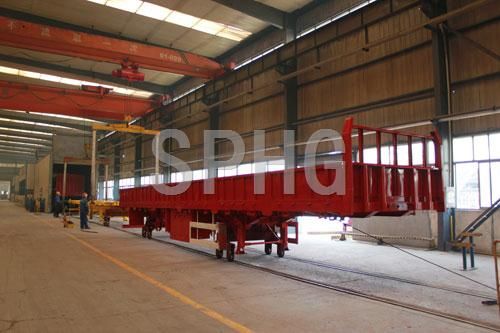 半掛車生產(chǎn)線采用滾輪生產(chǎn)方式,生產(chǎn)過程中減少了行車的使用頻率,降低產(chǎn)品的生產(chǎn)時(shí)間,提高了工作效率,增加安全系數(shù)。對(duì)半掛車的工藝布局進(jìn)行合理的規(guī)劃,結(jié)合用戶的實(shí)際需求設(shè)計(jì)制造工裝、夾具及專用焊接設(shè)備。