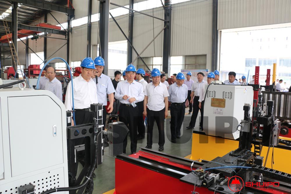 在公司領(lǐng)導(dǎo)的陪同下,張市長(zhǎng)一行先后參觀了水泊焊割智能化裝備車(chē)間、汽車(chē)零部件智能化生產(chǎn)車(chē)間。