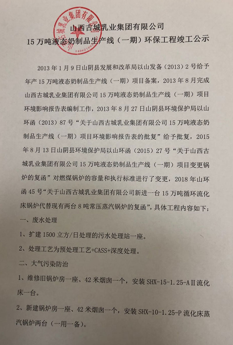 公司15萬噸液態(tài)奶制品生產(chǎn)線(一期)環(huán)保工程竣工公示